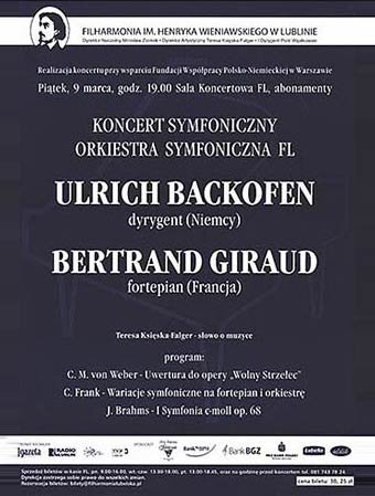 Albanian Radio & TV Symphony Orchestra: Tirana Concert Hall (Charpentier, Bartók, Brahms 4th) • Anhaltische Philharmonie Dessau: Dessau Anhaltisches Theater (Mozart “Prague”, Stravinsky Fire Bird Suite) • Arad State Orchestra: Arad Palais de Culture (Wagner, Enescu, Liszt, Ravel) • Belarusian State Philharmonic Orchestra: Minsk Philharmonic Concert Hall (Mozart, Bruckner 4th) • Bergische Symphoniker: Remscheid Schloss Burg (Biber, Haydn, Ives, Schubert 3rd) • Bochumer Symphoniker: Bochum Stadthalle Wattenscheid (Beethoven, Bartók, Tschaikowsky 4th) • Bohuslav Martinu Philharmonic Orchestra: Zlin Congress Centre (Bach Weihnachts-Oratorium) • Choeur de la Suisse Romande: Dresden Kreuzkirche (Honegger Le Roi David / Dvorák Te Deum) • Estonian National Symphony Orchestra: Berlin Konzerthaus, Tallinn Philharmonic Hall (Sibelius 2nd etc. / Bruckner 9th, Berg Wozzeck etc.) • Favorit-und-Capell-Chor Leipzig [MDR Radio Chamber Choir]: Chemnitz Schlosskirche, Kloster Osek (Bach Hohe Messe h-moll) • Filarmonica Moldova Iasi: Iasi Philharmonic Hall (Bach, Dvorák 9th / Brahms Requiem) • Filharmonia Lubelska: Lublin Philharmonic Hall (Weber, Franck, Brahms 1st) • Folkwang Kammerorchester Essen: Essen Villa Hügel (R. Strauss, Schoeck, Dvorák) • Frankfurter Museumsorchester: Frankfurt Opernhaus (Ballettabend Bach, Stravinsky) • Gewandhauschor Leipzig: Chemnitz Schlosskirche, Kloster Osek (Bach) • Göttinger Symphonie-Orchester: Göttingen Stadthalle (Elgar, Schubert C-dur) • Hamburger Symphoniker: Hamburg Laeiszhalle (C.P.E.Bach, Haydn, Ives) • Hessisches Staatsorchester Wiesbaden: Wiesbaden Kurhaus (Bellini, C.P.E. Bach, R.Strauss “Tod und Verklärung”) • Janácek Philharmonic Orchestra Ostrava: Dresden Kreuzkirche (Kunad, Janácek Glagolitische Messe) • Krakow Philharmonic Orchestra: Krakow Philharmonic Hall (Grieg, Schumann, Sibelius 2nd) • Liepaja Symphony Orchestra: Liepaja Concert Hall (Haydn, Dvorák, Brahms Haydn Variations) • Lithuanian Chamber Orchestra: Vilnius Lithuanian National Philharmonic Concert Hall (Haydn, Mozart, Mendelssohn 1st) • Lódz Symphony Orchestra: Lódz Philharmonic Hall (Fibich, Bartók, Enescu, Kodály) • Magdeburgische Philharmonie: Magdeburg Theater (Bach Suite no. 4, Mozart “Haffner” etc.) • Münchner Symphoniker: München Herkulessaal der Residenz (Beethoven 7th etc.) • Musica Viva Ensemble Dresden: Augsburg, Berlin Konzerthaus, Dresden Staatstheater, Leipzig, Rostock, Schwerin (nearly all important Music for Chamber Ensemble from Schoenberg to Boulez etc.) • NDR Radiophilharmonie Hannover: Hannover NDR Radio Konzertsaal (Vivaldi, Wagner, Liszt) • Niederösterreichisches Tonkünstlerorchester: Wien/Vienna ORF RadioKulturhaus, other places in Austria (20th century Austrian Composers; Webern Passacaglia, Mozart “Prague”) • Nis Symphony Orchestra: Nis Concert Hall (Gluck, Mendelssohn, Brahms 1st) • Norddeutsche Philharmonie Rostock: Prague Rudolfinum (Beethoven, Dvorák, Shostakovich 5th) • Nordwestdeutsche Philharmonie Herford: Herford Orchestersaal (NDR production Mussorgski/Shostakovich) • Odense Symphony Orchestra: Copenhagen Royal Theatre (Beethoven, Nielsen) • Oldenburgisches Staatsorchester: Oldenburg Staatstheater (Mozart, Bartók, Reger Mozart Variations) • Opera Classica Europa: (Verdi-Wagner Gala / Mozart Zauberflöte / Bizet Carmen) • Orchester des Staatstheaters Darmstadt: Darmstadt Staatstheater (Flammer, Mozart, C. Franck Symphonie) • Orchester Musikkollegium Winterthur: Winterthur Stadthalle (Poulenc, Mozart) • Orchestra of National Opera Theatre Constanta: Opera Classica (Mozart Zauberflöte) • Orchestre de Chambre de Genève: Chemnitz Schlosskirche, Kloster Osek (Zelenka, Schoeck, Bach) • Orquesta y Coro del Teatro Cafam de Bellas Artes Bogotá: Bogotá Teatro de Bellas Artes (New Year´s Concert) • Oslo Kammerkor: Chemnitz Opernhaus, Kloster Osek (Bach, Zelenka, Mozart etc.) • Philharmonie Südwestfalen: Langen Stadthalle / Limburg Stadthalle (Chopin, Mendelssohn, Bruckner) • Philharmonischer Chor Dresden: Dresden Kreuzkirche / Dresden Schauspielhaus (Mahler 2nd / Grieg Peer Gynt) • Philharmonisches Orchester Cottbus: Cottbus Theater (Haydn, Bruckner 3rd) • Philharmonisches Orchester der Landeshauptstadt Kiel: Kiel Schloss (Kunad, Händel Dettingen TeDeum) • Philharmonisches Orchester Zwickau: Zwickau Stadthalle (Glinka, Tschaikowski, Debussy La Mer) • Plovdiv State Philharmonic Orchestra: Plovdiv Philharmonic Hall (Beethoven, Sibelius) • Prager Smphoniker: Dresden-Kreuzkirche (Dvorák Requiem / Honegger / Dvorák Te Deum) • Prague Philharmonic Choir: Dresden-Kreuzkirche (Bruckner Messe e-moll / Janácek Glagolitische Messe / Beethoven Missa Solemnis / Dvorák Requiem etc.) • Radio Symphonie Orchester Pilsen: Pilsen Konzertsaal, Erlangen, Viersen etc. (Flammer, Schumann, Dvorák 8th / Mendelssohn “Schottische” etc.) • Radio Symphony Orchestra Prague: Dresden Kreuzkirche (Beethoven Missa Solemnis) • Radio Symphony Orchestra Warszawa: Dresden Kreuzkirche (Verdi Requiem) • Radio-Sinfonieorchester Stuttgart des SDR: Stuttgart SDR Radio Musiksendesaal (Mozart Ouverturen, Dvorák Serenade) • Residentie Bachkoor Den Haag: Chemnitz-Schlosskirche, Kloster Osek (Bach) • Rhein-Main-Philharmoniker: Opera Classica Europa (Bizet Carmen) • Rundfunk-Sinfonieorchester Saarbrücken: Saarbrücken SR Radio Konzertsaal (Bartók Orchestra Pieces) • Rundfunkchor Prag: Dresden Kathedrale (Dvorák Stabat Mater) • Rzeszów Philharmonic Orchestra: Rzeszów Philharmonic Hall (Bach, Mozart, Mahler 1st) • Silesian Philharmonic Orchestra: Katowice Philharmonic Hall (R.Strauss, Laló, Dvorák 9th) • Slovak Chamber Orchestra: Tour North Italy (European Masterpieces) • Staatsorchester Rheinische Philharmonie: Birkenfeld Stadthalle (Beethoven 3rd etc.) • Staatsphilharmonie Brünn/Brno: Dresden Kreuzkirche (Mahler 2nd) • Städtisches Orcheste